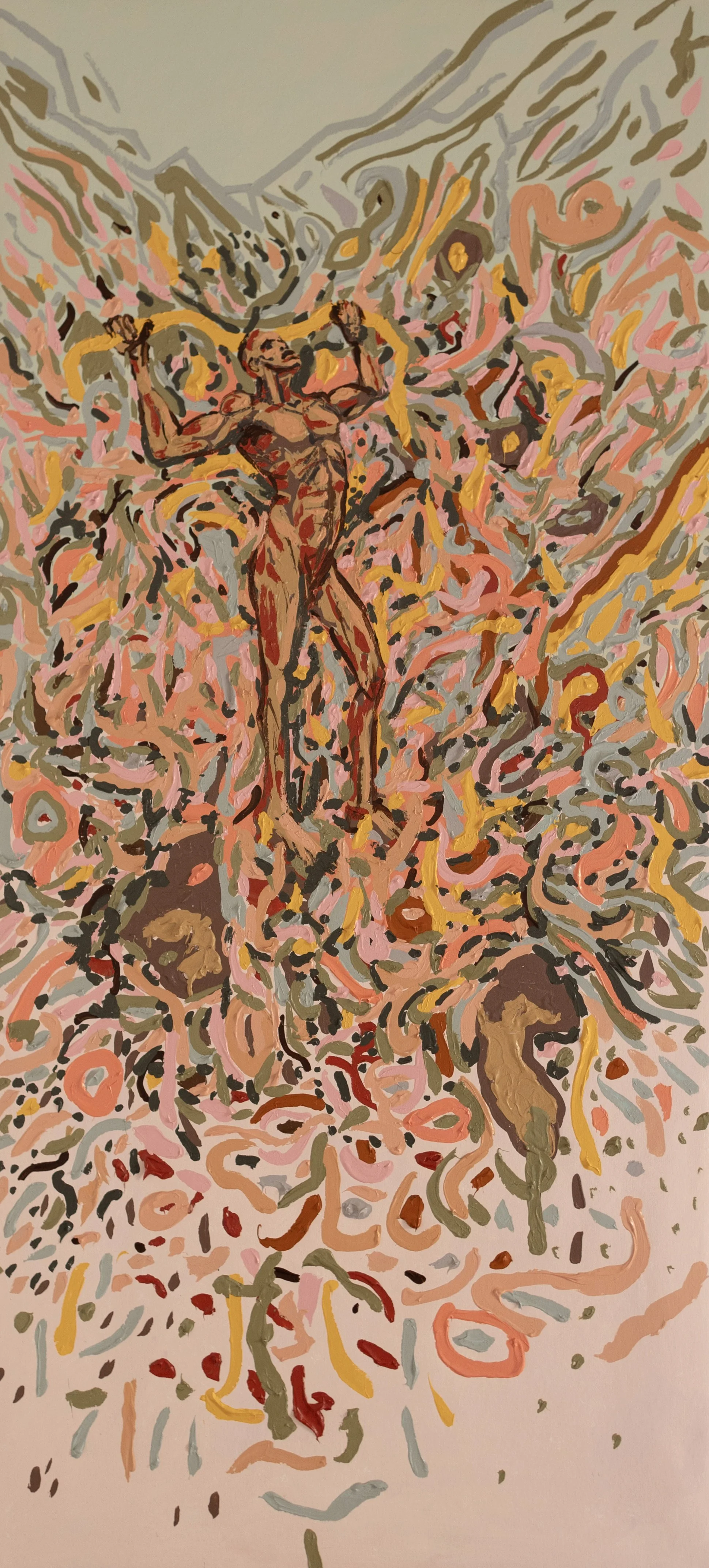 No todos los artistas visuales dominicanos pueden permitirse ser artistas a tiempo completo. Yoel es uno de ellos. Hasta 2018 trabajó en el departamento de arte de una agencia publicitaria. Ese año, tras tocar puertas con portafolio en mano, comenzó a generarse un aliciente financiero que le permitió dejar el empleo estructurado: trabajar para producciones cinematográficas grabadas localmente. La Ley 108-10, conocida popularmente como la Ley de Cine, ha establecido los incentivos fiscales para el desarrollo de un subgrupo especializado a nivel local: los creadores de los sets de filmación, desde directores de arte hasta ejecutores. Yoel ha sido a veces pintor escénico, a veces productor de utilería, a veces ilustrador de sets. A falta de una homóloga corriendo en el sector artístico —la Ley de Mecenazgo apenas comenzó a gatear en 2023—, la Ley de Cine ha absorbido a muchos egresados de instituciones como Chavón y la Escuela Nacional de Bellas Artes que no encuentran un camino de carrera en un país con pocas galerías para asesorarles comercialmente, pocas residencias artísticas para costearles el tiempo de producción, pocas secciones especializadas en los medios locales para difundir su trabajo.